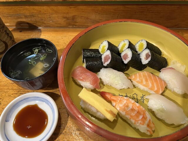 握りは、マグロ、鯛、サーモン、イカ、海老、玉子、鉄火巻き、たくあん巻きでした!!