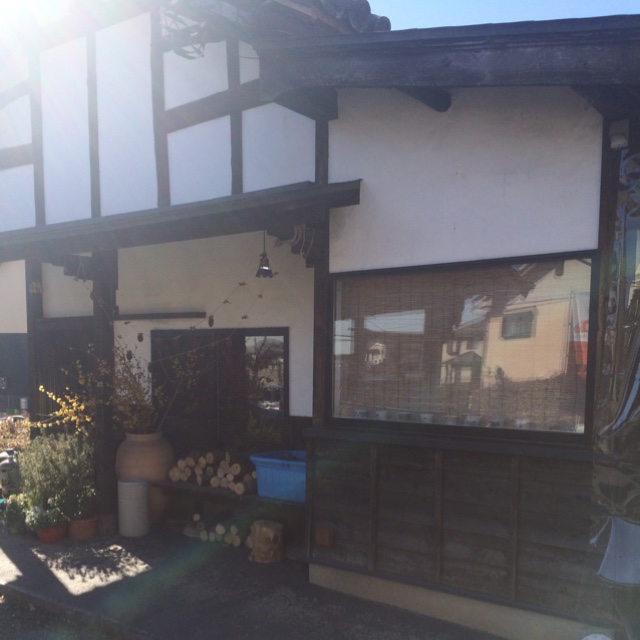 古民家をリノベーションした建物で、まず外側の引き戸を開けて入り、次に中側の引き戸を開けて入る。