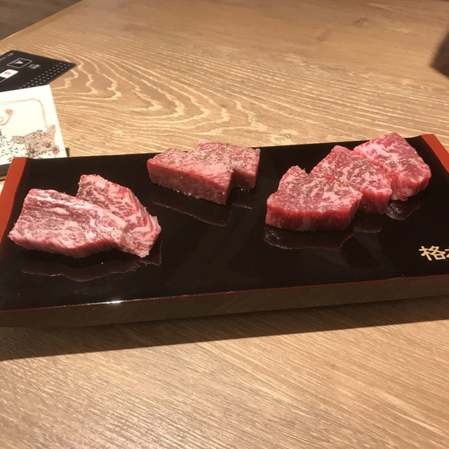 最初にカイノミ、ハネシタ(ザブトン)、サーロインが出されて、次にヒレ、肩ロース、ウチモモが出された。