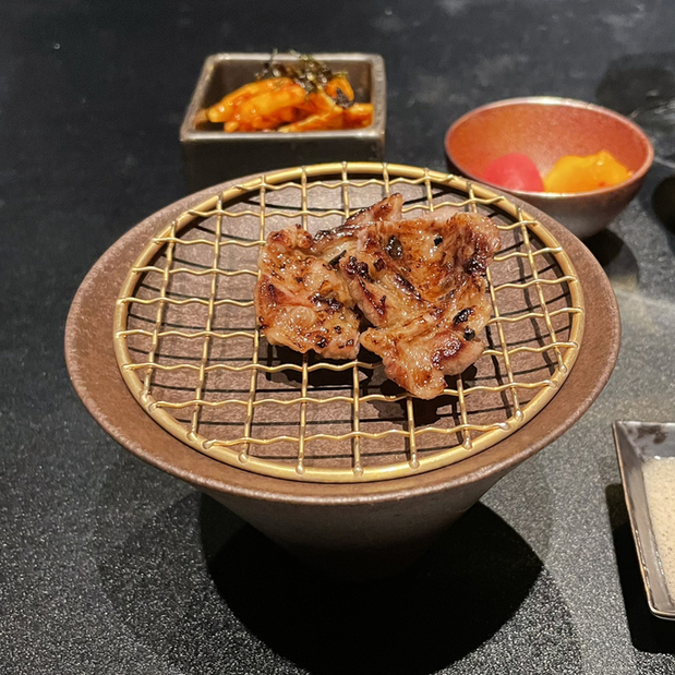 但馬玄 特上カルビはしっとりとして口の中いっぱいに旨味が広がる。