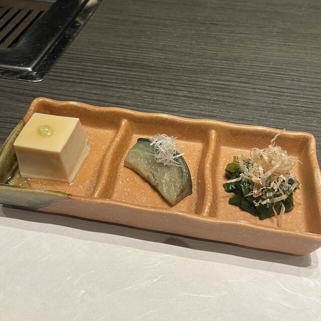 お浸しは新鮮でさっぱりとしていて優しい食感であり、茄子の揚げ浸しは瑞々しく旨味があり、自家製胡麻豆腐は胡麻の香ばしく濃厚な味わいがする。