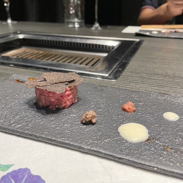 ユッケは食感がしっかりとして味わいがあり、トリュフの芳醇な香りが美味さを際立たせる。