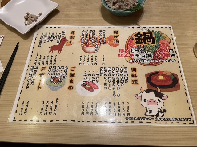 メニュー。