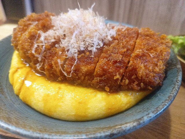 会津地方でも只見の方に行くとカツの下に卵焼きを敷くというのは聞いたことがありますが、ここの卵はオムレツのようなふっくらした卵焼きが厚手のクッションのように敷かれていました。