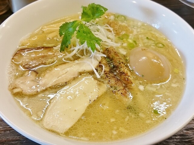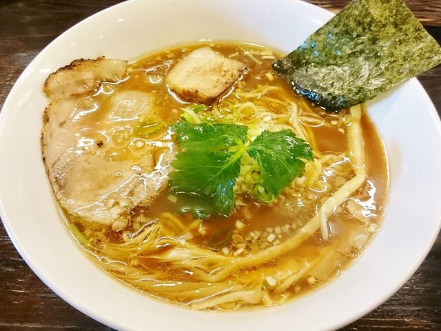 スープは、豚の旨みのある微乳化スープに、醤油ダレと背脂。