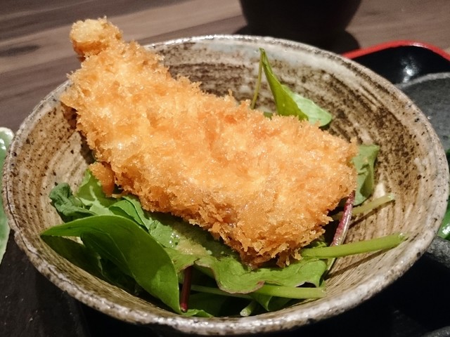 衣が香ばしく、揚げ色もキスより濃いめで男性的。ほっくりと旨い。
