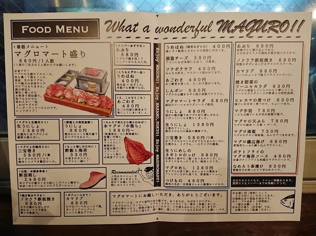 看板や外装をはじめ、店内のオブジェやアート、メニューブックから食器に至るまで、ほぼすべてがマグロというマグロLOVE全開なこちらでは、マグロのあらゆる部位を使った創作メニューがいただけます。