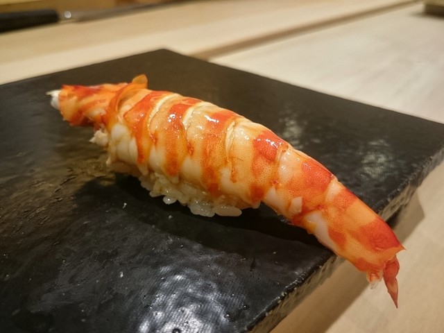 美しく薄い飴色の身は、上品な旨みとほんのりとした甘み。すし飯にぴったりとなじんでいます。