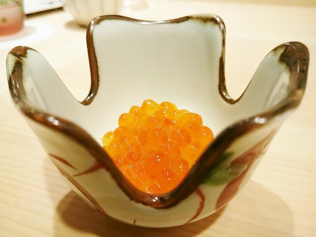 銀座八丁目にあるこぢんまりとしたお鮨屋さん。毎朝ご主人自ら築地に行って仕入れてくるとびきりの魚介を惜しげもなく使った旬のお鮨がいただけます。