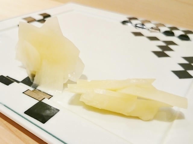 おいしく食べさせるために鮨の温度にも細心の注意を払っておられたり、鮨めしも鮨だねに合わせて2種類を使い分け、ショウガも食感や香りの異なるものを2種類手作りしたりなど、手間暇を惜しまずにこだわり抜いたお仕事をされています。