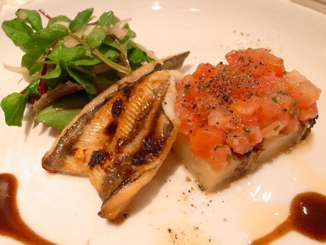 更には、新ジャガに穴子を組み合わせたプレートの上にトマトを載せているのが、意外性があって楽しい。