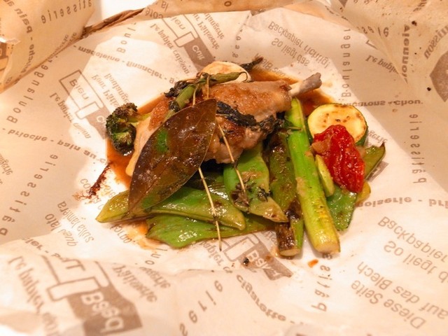 これは別コースのメインですが、ほろほろ鶏のパピヨット仕立て。