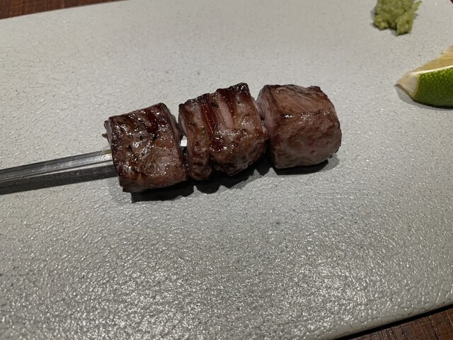記念日のお祝いで訪問。もともと白金にあった牛串の名店がこの夏に関内に移転してきました。まだ評価は低めですが、今後上がっていくのだと思います。