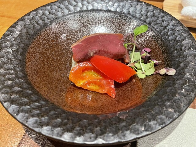案内されたカウンターで前菜からスタート。順番に食べるスピードに合わせてタイミングよく出していただけます。出す順序も絶妙で飽きずに牛を堪能できます。