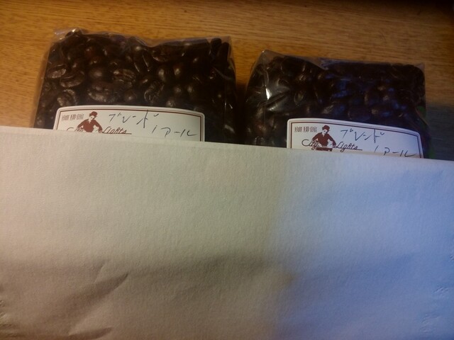 ノアール、マンデリンの珈琲豆を100グラムづつ持ち帰りました。