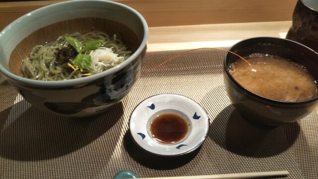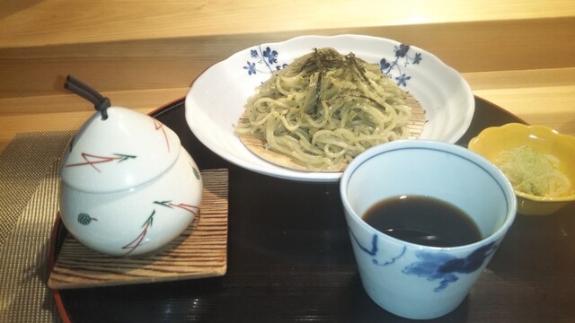 多満麺セットのあおさ蕎麦、茶碗蒸し。