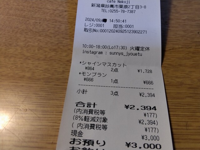 お墓参りの後に雪詩慕雲上越店さんで昼食の後に来店しました。