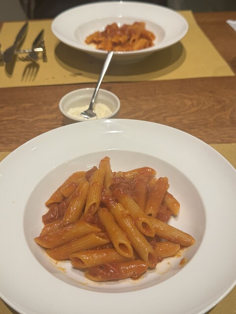 (絶対はずせないやつ)です。そして、パスタとリゾットをダブルで頼むと、この量が”敵”になります。ほんと、旨味が凄いので食べますが、お腹にもずっしり来ます。