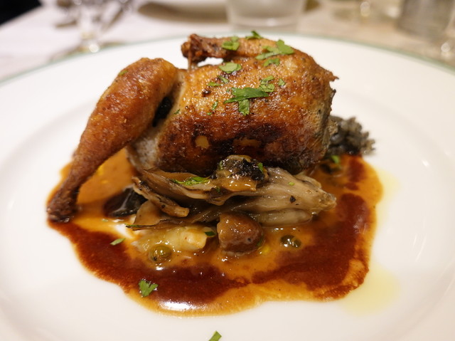 ほかの進化、ウズラローストにイカ墨リゾットをスタッフィングしたもの。