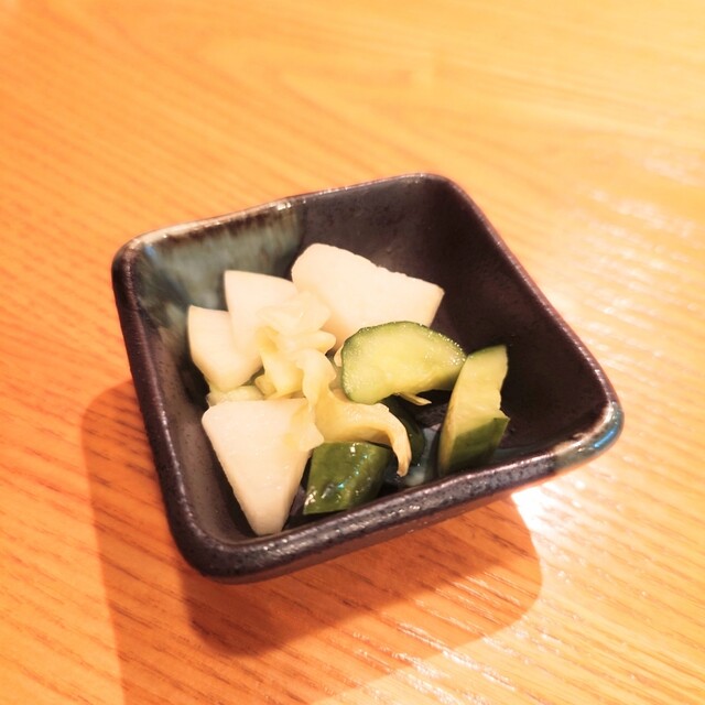 冷たくて瑞々しい"お漬物"は、嬉しい二種盛り。