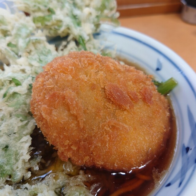 ご覧の通りの厚さがあり、かき揚げでお腹が膨れます。