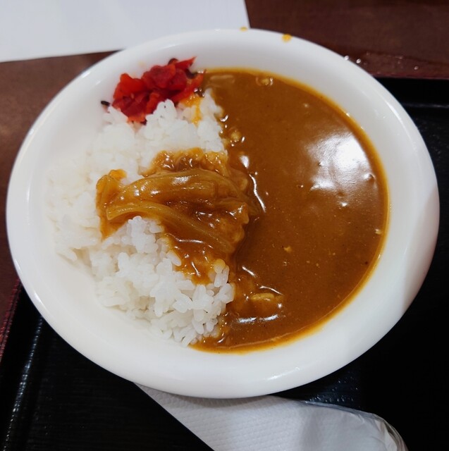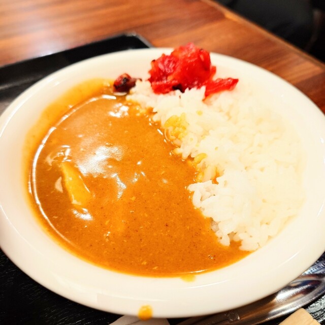 お皿のサイズに丁度よい量が添えられているので、ミニカレー単体の写真を撮ると、フルサイズに見えてしまいます。