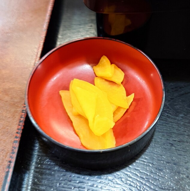 箸休めの"沢庵"は冷たくて瑞々しい。
