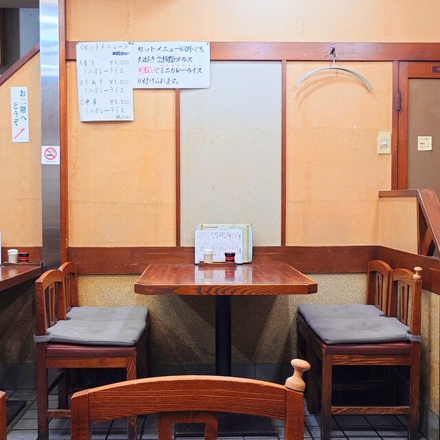 一階の四人掛けテーブルの斜向かい相席が一箇所だけ空いていたのでそちらへ。