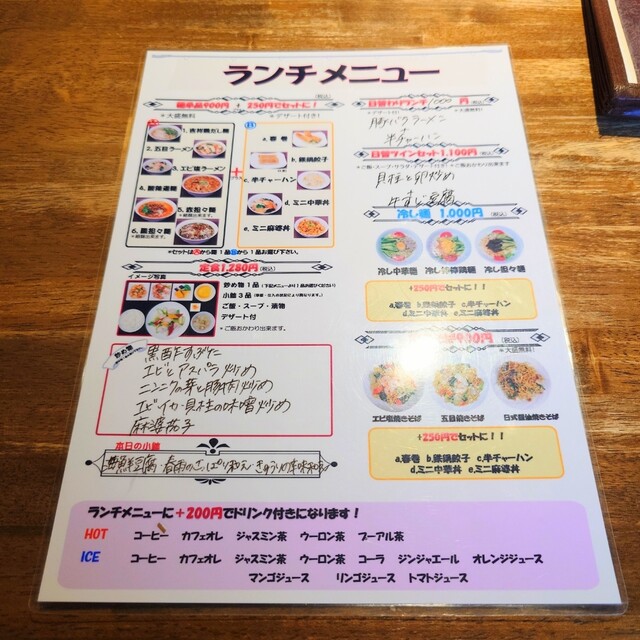 ランチメニュー。