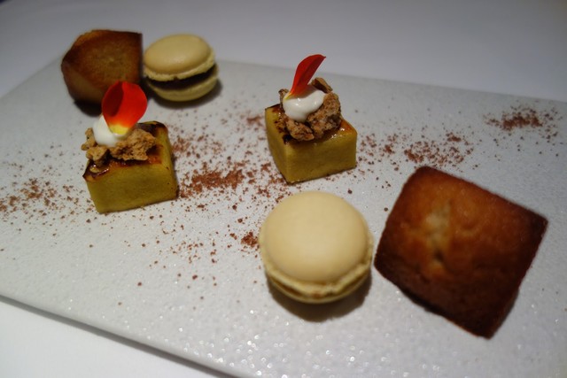 小菓子はフィナンシェにマカロン、サツマイモのケーキ。最後の最後まで抜かりのないプレゼンテーション。シェフは女性的な感覚を多く持ち合わせているように感じました。