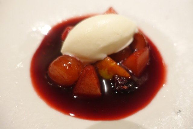 デザートは割に普通。これまでの派手な料理から一転して飾り気の無い一皿です。