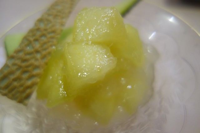 天ぷら屋であってもデザートに抜かりなし。メロンにポートのジュレ。優しい生姜が隠し味。これと同じレベルの甘味を出せるグラン・メゾンがどれだけ東京にあるだろうか。