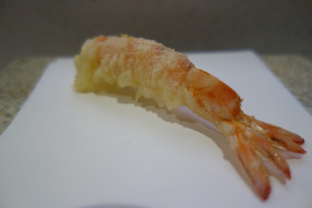 天ぷらの締めくくりは才巻エビ。その禁欲的で清澄な様は今夜の饗宴の署名にぴったりでした。ひとつだけワガママを言うとすれば、アナゴを是非とも食べたかった。