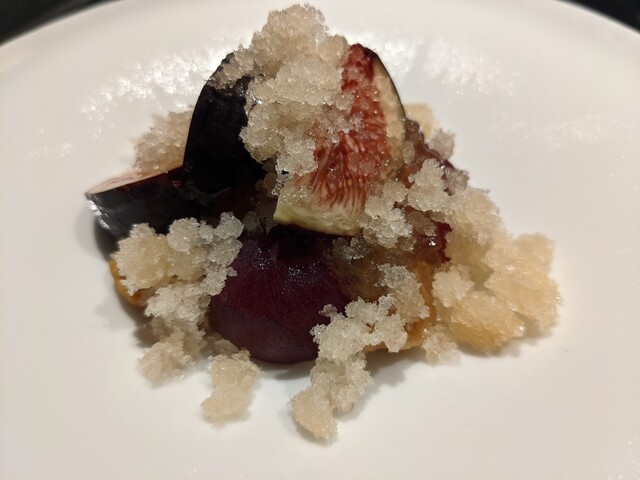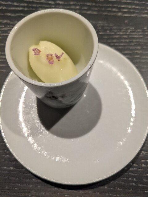 お口直しにも手が込んでいて、なんと青唐辛子と青柚子が起用されています。爽やかな柑橘の香りにピリリと感じる唐辛子の辛味。どこか東南アジア的なニュアンスを感じる興味深い氷菓でした。