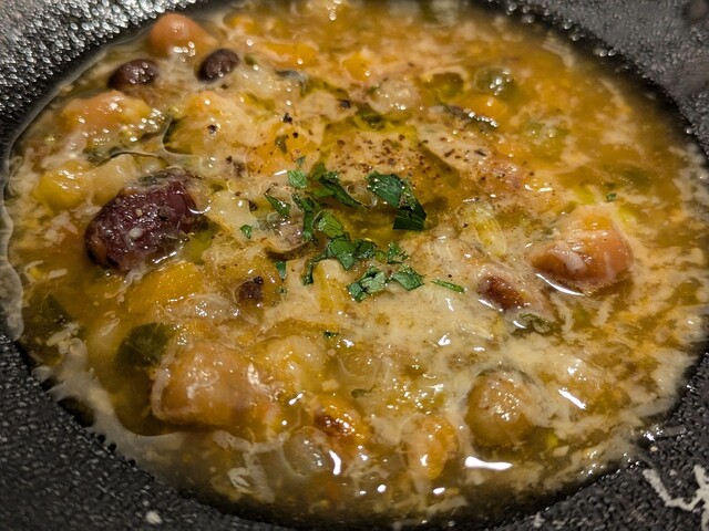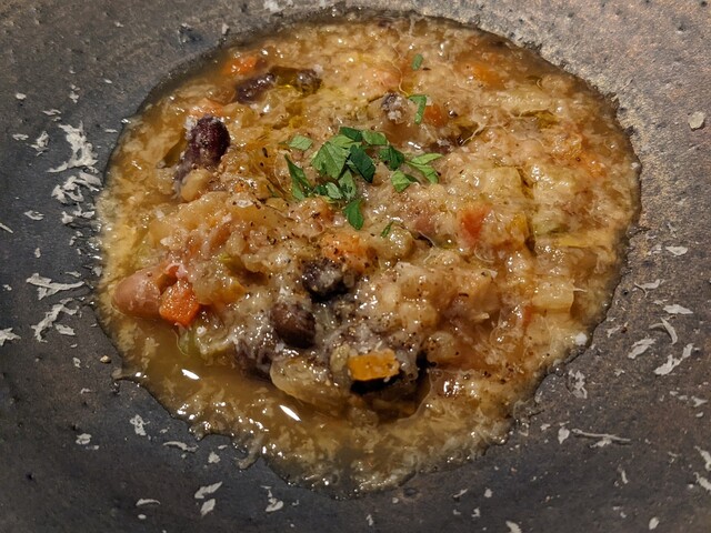 ミネストローネが優しい。巷間に流布するミネストローネとは一線を画し、刺々しさは1ミリもなく「滋味深い」という表現がピッタリの味わいです。夜食とか朝ごはんに常備したい。