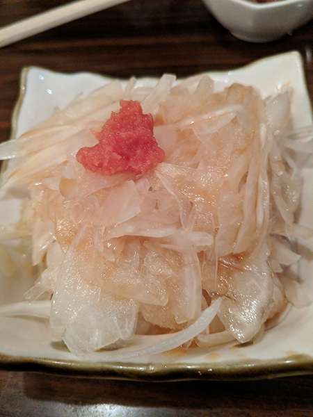 このお店は黒板に書かれている刺し身がかなりいい感じなので、気になったホヤ刺し(500円)を注文。20時前くらいだったけどラス1で売り切れになった。