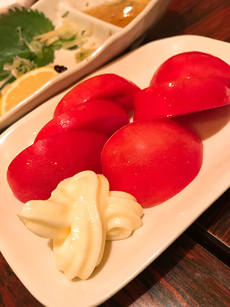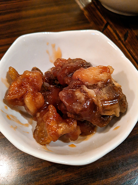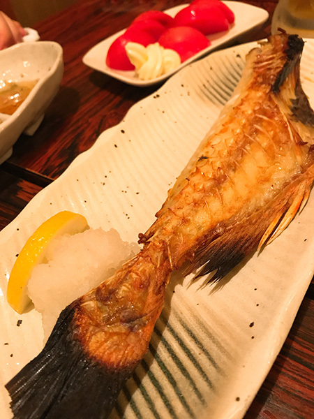 揚げ出し豆腐(500円)は豆腐半丁くらいのボリューム感。出汁はは醤油ではなく白出汁系なのが嬉しい。薬味に三つ葉とネギ、生姜が焼酎に合う。