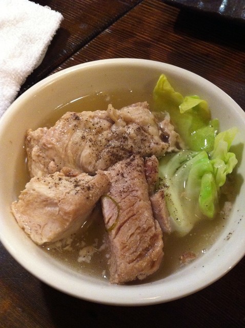 個人的に豚肉は好きだから豚肉メインの料理ってのもうれしい。オススメは「ハラミのたたき」。こいつをにんにく醤油と水菜を巻いて食べるのが絶品。あとは塩角煮とかホルモン盛り合わせとかもかなりオススメ。料理のボリュームもちょうどいいくらいなので二人で行っても大人数で行ってもかなり満足できるお店。