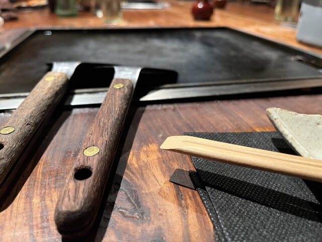 主に接客してくださったSHINさんという学生さんが焼いてくださったのですが、焼く最中の応対がとても素晴らしく、とても居心地の良い楽しい空間を提供していただきました。私たちは焼けたもんじゃを小さなヘラで少しずつパクパク。一つ食べたらもう一つまた焼いてくれるので、至れり尽くせりな感じがちょっと嬉しい。