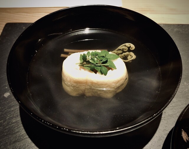 お出汁が上品で胃に優しいです。白ワインとともに。