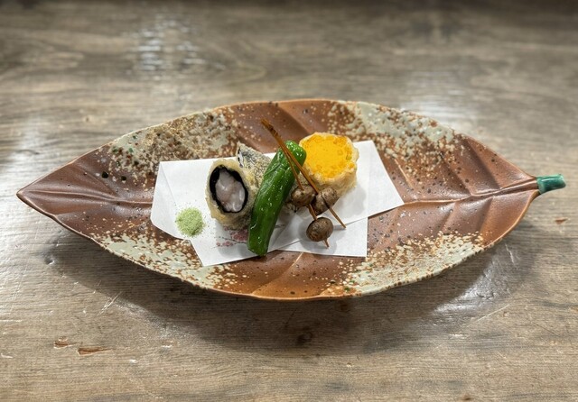 ・八角の変わり揚げ 南瓜 零余子 獅子唐