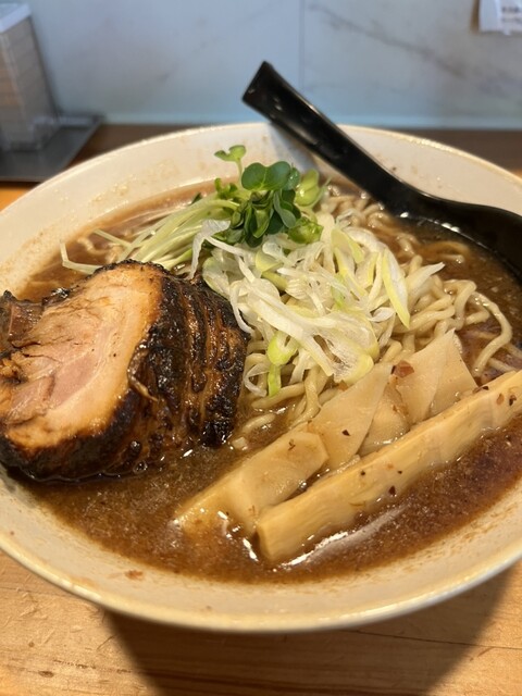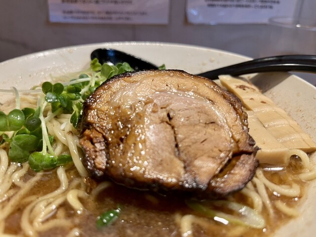 ラーメン変わらずの美味しさ、鰹たっぷり感じるスープがめちゃくちゃウマい!久々に食べるドデカ角煮チャーシューもやっぱり美味しいです。並ばなくて良くなったので月いちでは食べに来たいなー。完飲!