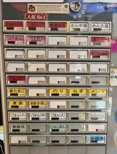 しかし券売機のランプは今日も✖️。やっぱり今日もなかったー。その代わりトッピングの豚煮をプッシュしてチャーシュータワーの再現を試みます。