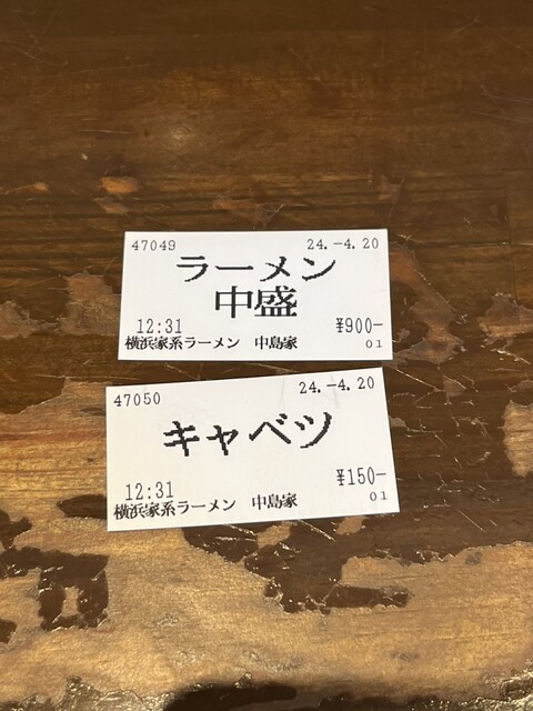 ラーメン中900円 キャベツ150円