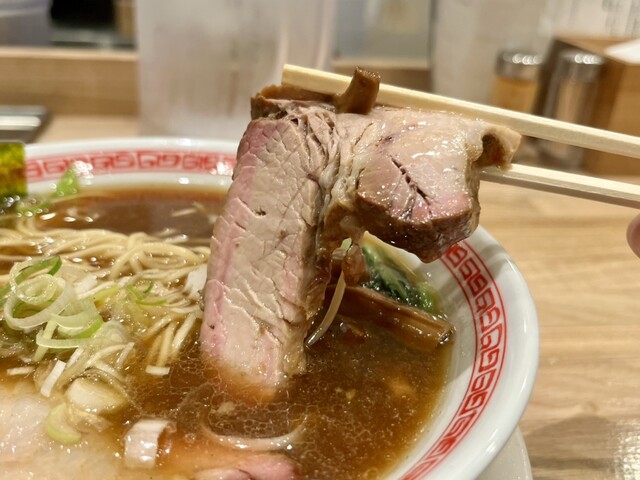 バラチャーシューもパク。ふむふむ。バラチャーシュー美味しかったが、これなら圧倒的に吊るしチャーシューの方が好き!脂身がない肉質の食感、ボリューム、そして旨さ!圧勝です。特にあの肉食べてるって食感が好き。