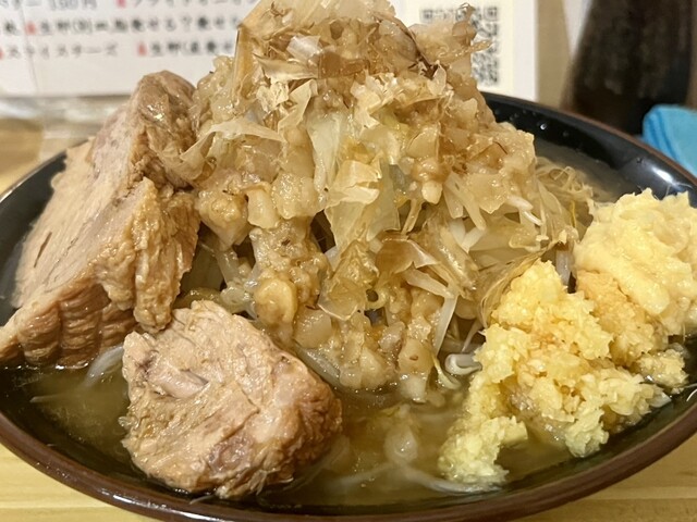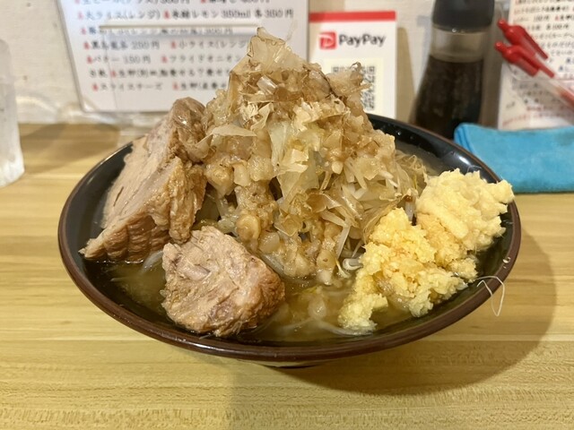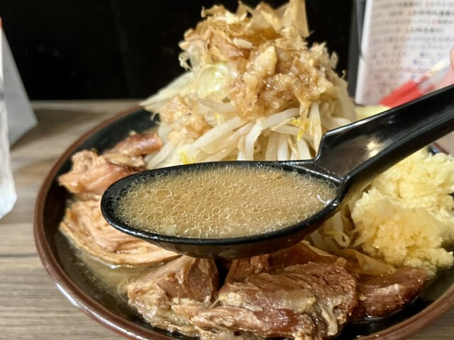二郎系も家系と同じくらいアブラ多いけど、スープはほぼ啜らないので午後の胃もたれは軽いのが良いですね。