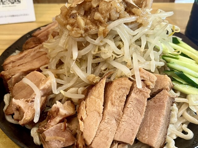 ジローなので当然のようにニンニクチャージもします。冷やし麺では初めてだけど予想通り、よりニンニクの刺激を感じられてうめぇ!