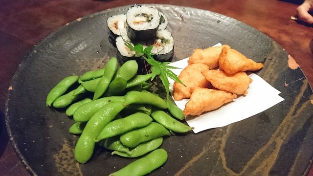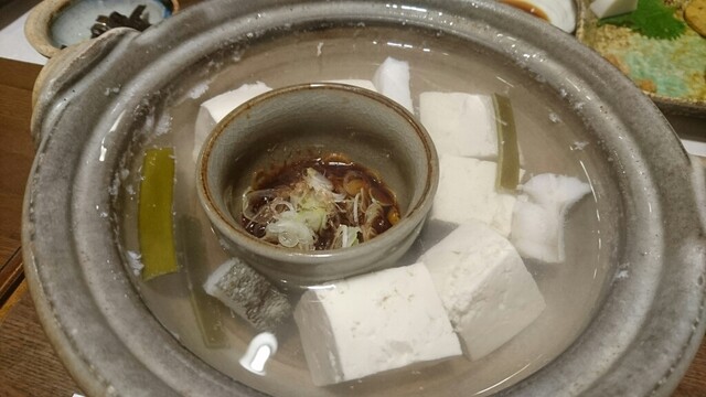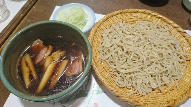 仕事がいつもより早めに終わった週末。同僚4人で、たまには明るいうちから行こうか!と出先で気になったこちらへ。お電話するとちょうど4名なら入れるとのこと。行ってみてからわかったが、ラッキーでした。早速、気になっていたおつまみセットを開始です。最初に肴が4種盛られてきました。焼き味噌・のりの佃煮・板わさ・辛み大根のしらすおろし。これ、名前書くだけで飲めますねww焼き味噌は、甘味・香ばしさ・歯触りのバランスよく、お酒が止まらない。佃煮はあっさりの炊き。いいですね~。辛み大根も久しぶりに頂きましたが、久しぶりの刺激と香りがたまりません。続いて湯豆腐。鱈が入っています。なかなかのボリューム(写真は2人前)鴨ロース。これがジューシーで柔らかで、香り豊かで旨い!!!ずっと口の中に入れておきたくなる脂の甘味。いや~、やられました。出汁巻き玉子もふわふわのジュッわ。お浸しは、数種類から選べて太三つ葉を選択。正解!! 歯触り、香りがお出汁とベストマッチです。いい感じで酔いが進んだところで、〆の蕎麦に。鴨が忘れらずに、鴨ざるそば。鴨の脂と合わさったそばつゆのコクが、そばの香りをつぶさずにいい塩梅。このタイミングでも、お酒追加の状態ですw1時間半ほど楽しませていただく間、満席続きで、都度残念そうな顔で立ち去る方々が。。。いや~、ほんと思いつきで出会えてよかったです。堪能させていただきました。また、お邪魔します。