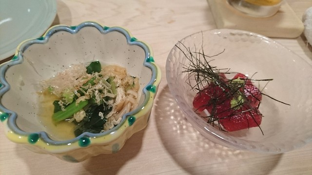 串物数品と野菜が採りたくて、季節野菜のお浸しをオーダー。