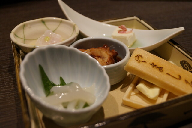 前菜から店名の入ったおしゃれな雰囲気が漂う料理と小鉢たち、どれも美味しくこの時点で幸せな気分に